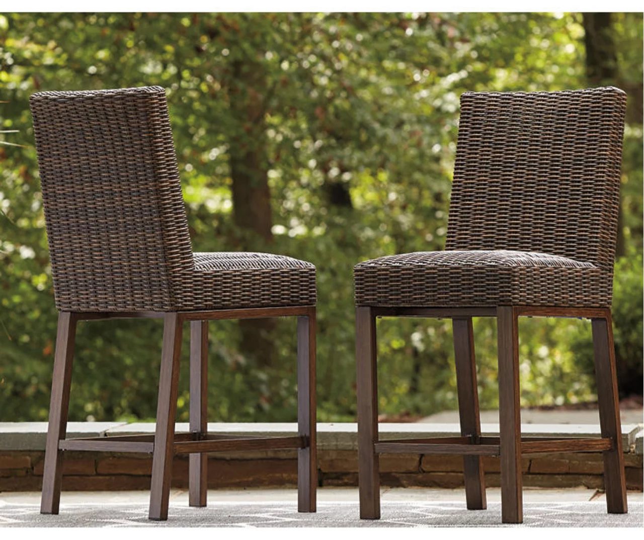 Pretty enough for trendy interiors, yet durable enough to weather the elements, this outdoor bar stool set rises to the challenge beautifully. Handwoven resin wicker over rust-proof aluminum merges high style with low maintenance. Rest assured, the exposed frames only look like wood. Their sturdy aluminum construction is perfectly suited for alfresco living.