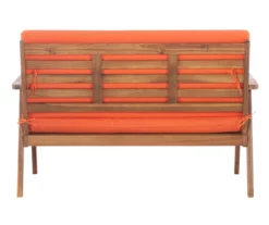 Designed to be colorful, inviting and durable, this cushioned furniture set is the perfect choice for any outdoor space. Its vibrant, removable orange cushions are made from performance fabric that resists fading and damage from the elements. Bringing even more style, its frame is built from durable acacia wood that is oil-stained in a traditional walnut finish. With two lovely chairs that pair with the compact loveseat and outdoor coffee table, this set is truly perfect for any outdoor event.