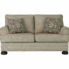 Punctuated by a subtle band of nailhead trim, this loveseat is perfect for those who love the look of leather. Two textural tones provide twice the style and comfort—and incorporate an added layer of visual interest. Throw pillows add a fun decorative element.