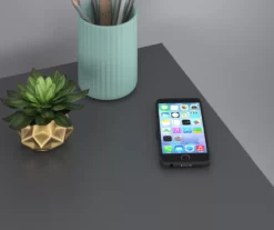 - Wireless charging spot on the desktop is compatible with all Qi-enabled devices and allows you to charge without the hassle of cords
