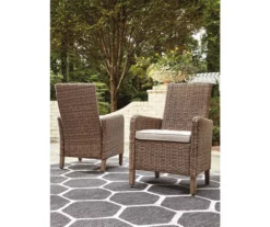 Sporting an easy-on-the-eyes look inspired by driftwood, these dining arm chairs with cushions elevate the art of indoor-outdoor living. Beautiful and durable enough for indoor and outdoor use, this brilliantly styled dining chair set entices with plush, removable cushion seating wrapped in high-performing Nuvella fabric that’s a breeze to keep clean.
