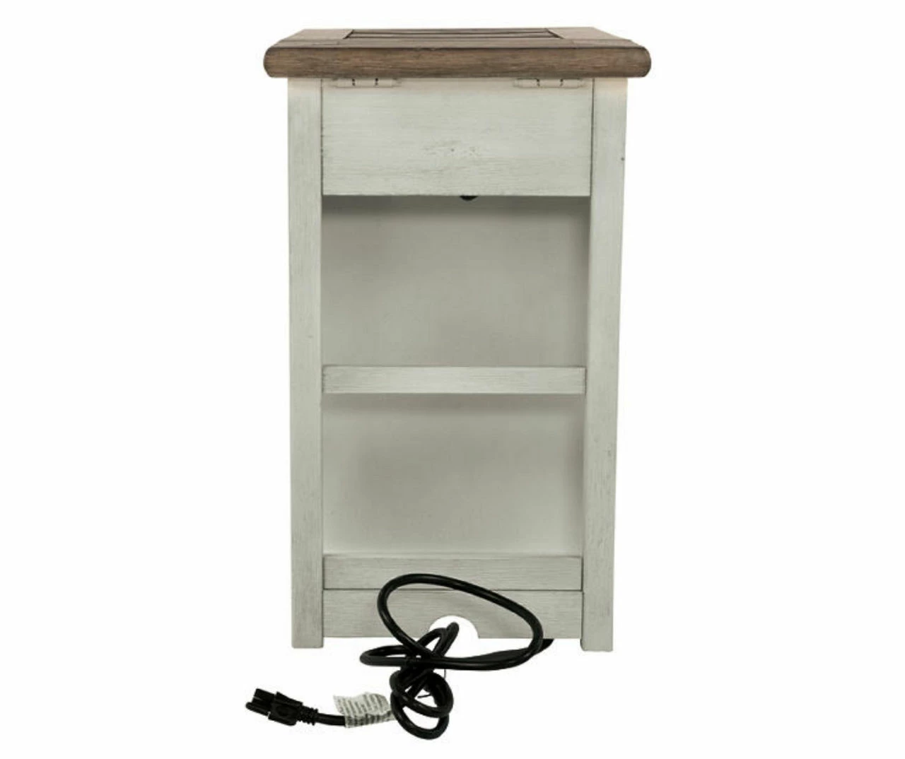 Display and contain your favorite things with this end table. Its textured antique white finish creates a vintage two-tone look, while outlets and USB ports provide functionality. This is a piece you will enjoy for years to come.