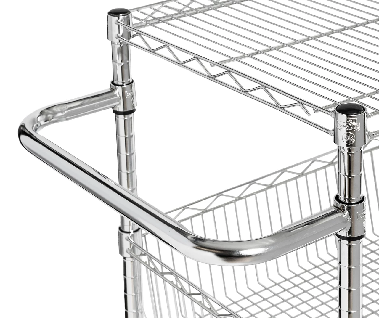 This utility cart is not for the meek. With a commercial grade build and the ability to easily move heavy loads from room to room with its locking wheels, this rolling cart can is perfect for tools and other heavy-duty items that need a place to land. It has a bar for easy maneuvering and a chrome finish that will work in any room of your home.
