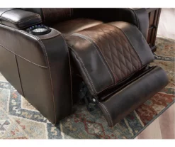 Movie nights will be forever changed with this power recliner. The adjustable Easy View headrest allows a primo view of the TV no matter how far back you recline and the extended ottoman provides extra room to really stretch out. Ultra-cool lattice stitching elevates the look and ambient LED lighting completes the theater-style experience. So relax, kick off your shoes and enjoy the show.