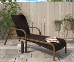 Cosco’s Villa Park wicker chaise lounge offers a new material developed for long-term use and minimal maintenance. Its SmartWick open-cell reticulated dry foam is an emerging, high-performance polyurethane material technology with antimicrobial properties. A thick pad adheres below the wicker seat so that you will experience the long-lasting comfort and feel of a cushion, but without the hassle – a maintenance-free solution. The structured foam contours to your body’s natural curves, providing the benefits of pressure-relieving comfort and satisfaction of superior design. This chaise lounge features an all-weather dark brown wide resin wicker weave, accented by a weather-resistant steel frame hand-painted with a faux wood finish.