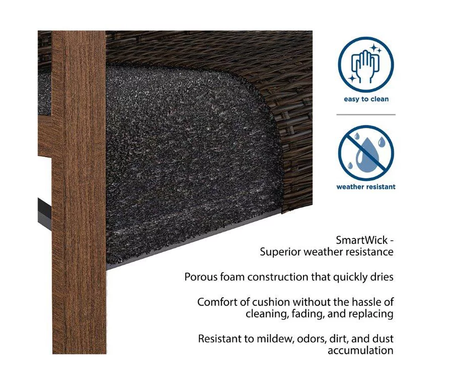 - SmartWick reticulated foam adheres below the wicker seat so that you will experience the long-lasting comfort of a cushion