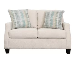 Dressed to impress with distinctive cutaway arms, this loveseat is an above-and-beyond choice for your fashionable abode. Wrapped in a soft flatwoven sandstone fabric that’s naturally on trend, this designer loveseat is sure to suit contemporary spaces and modern farmhouse places – and look right at home with classic and eclectic furnishings. That’s the beauty of a great transitional piece of furniture. That’s the beauty of this brilliantly done loveseat.
