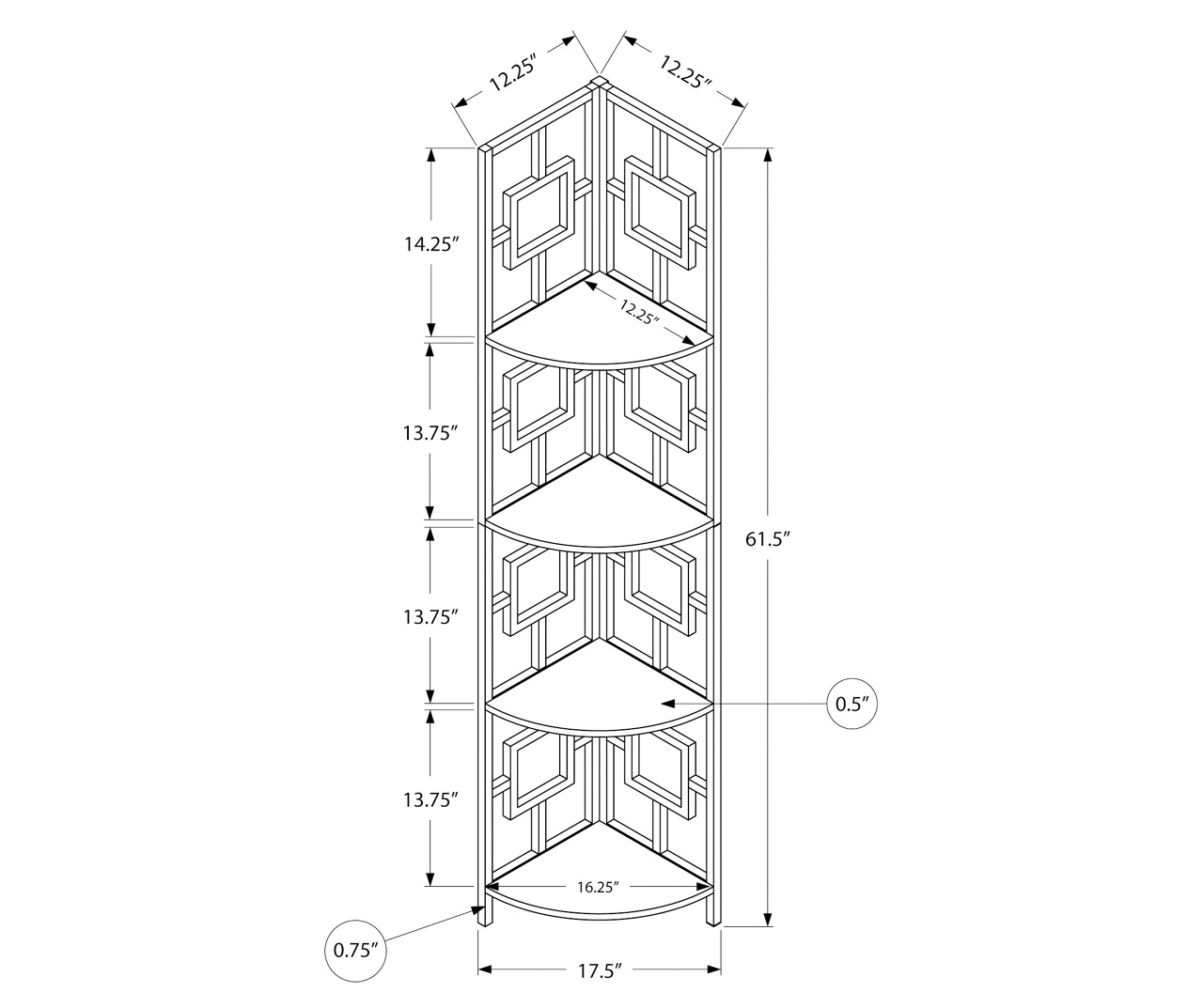 - Product dimensions: 17.5″L x 12.25″W x 61.5″H