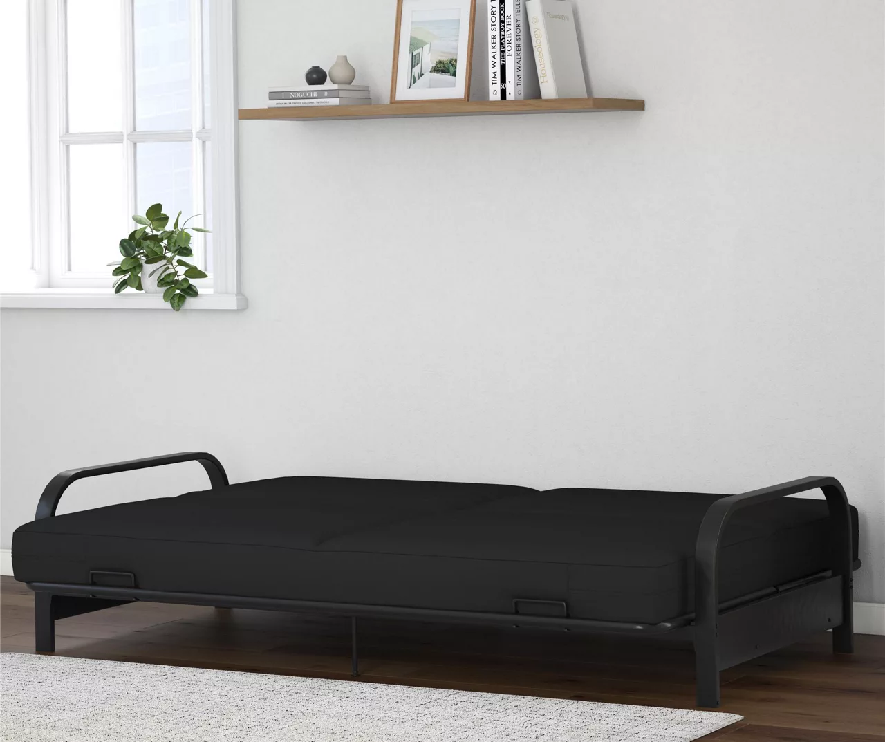 DHP Elbern Black Metal Futon With Black Microfiber Cover