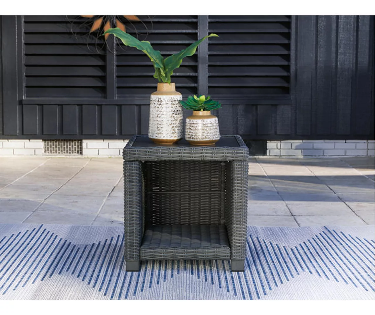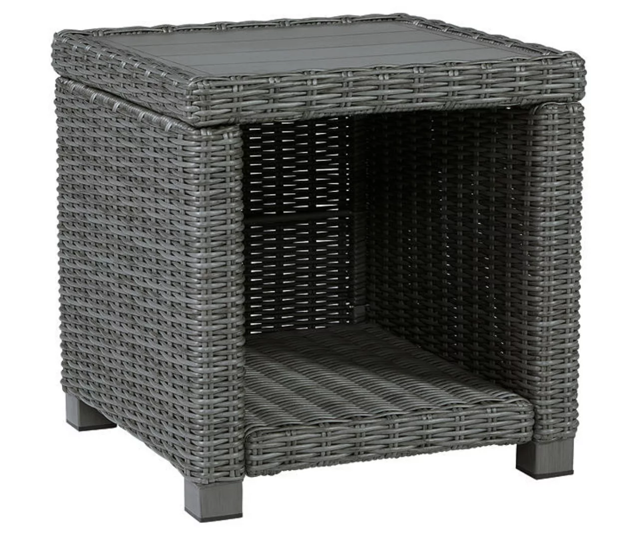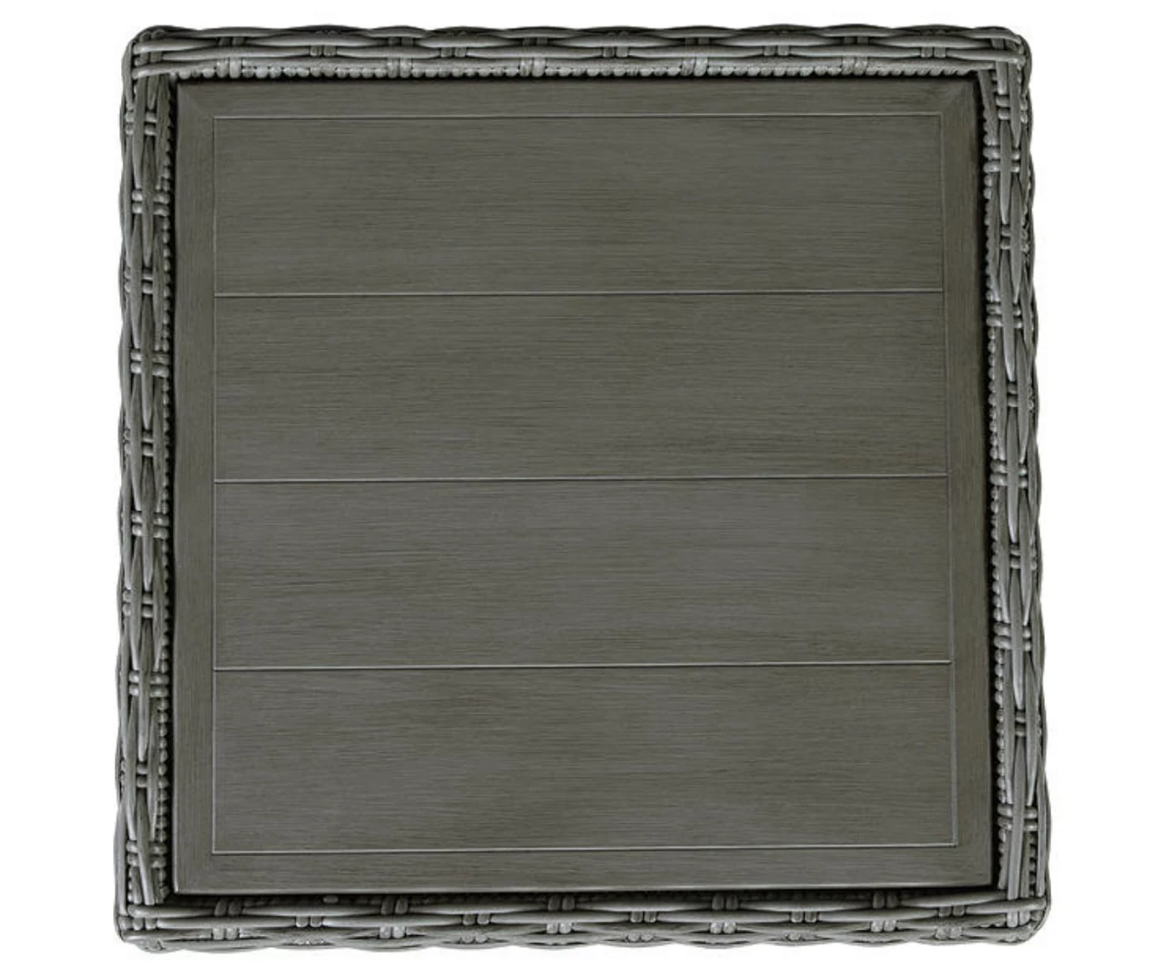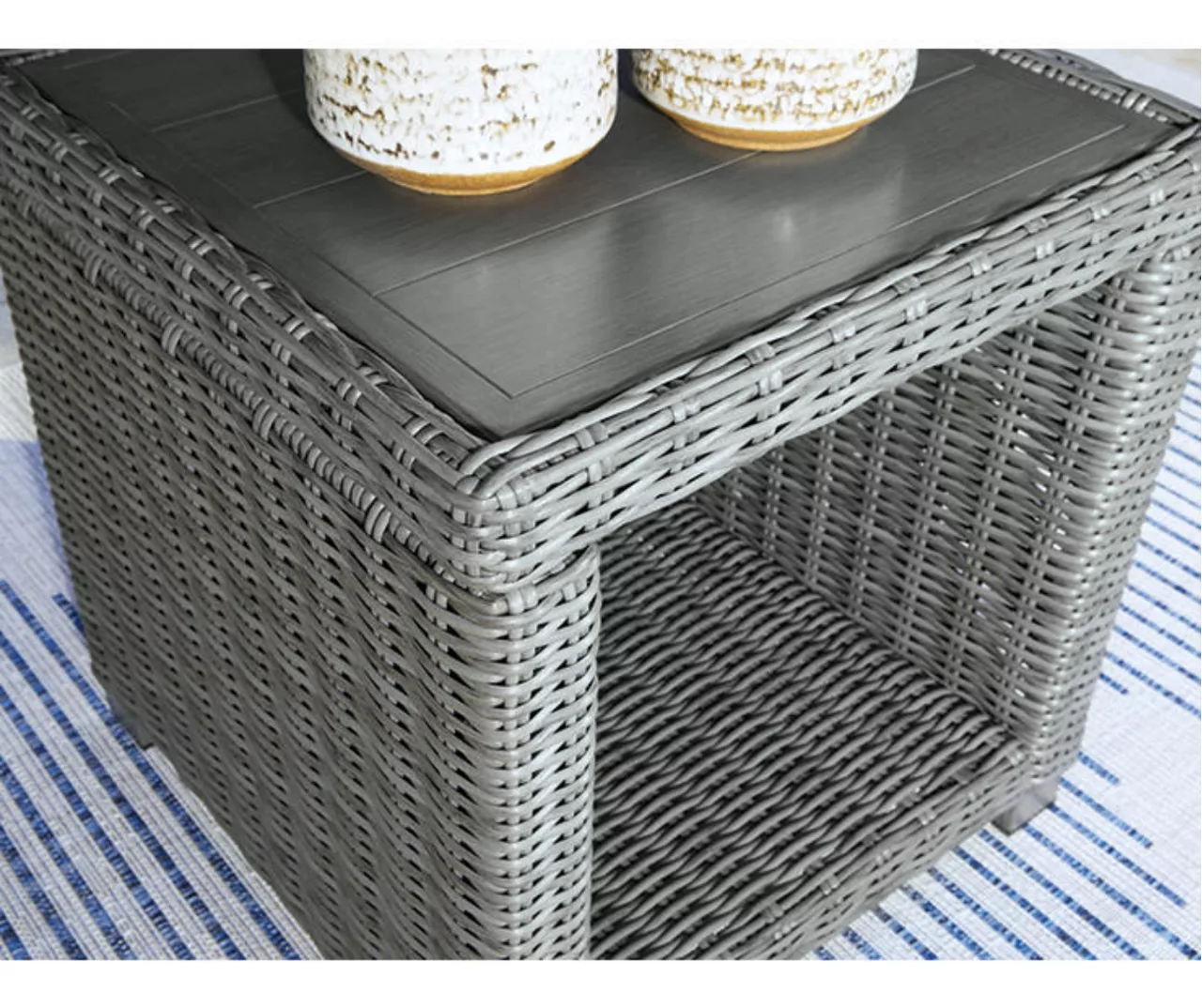 Add a distinguished touch of gray to your outdoor living space with this end table. This head-turning table is made with resin wicker over an aluminum frame for a relaxed look that provides seasons of enjoyment. Its aluminum top combines the exceptional durability and weather resistance you need with the “wood look” finish you love.