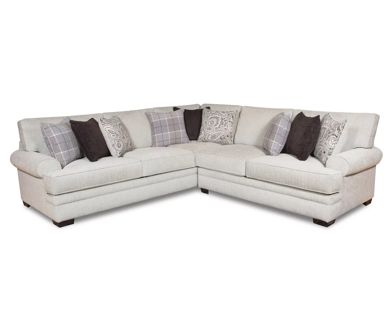 This sectional is covered in a soft chenille fabric accented by designer toss pillows for a fantastic look. Fully reversible cushions and backpillows are filled with foam for cozy seating. The frame is hardwood and plywood that is corner blocked for strength.