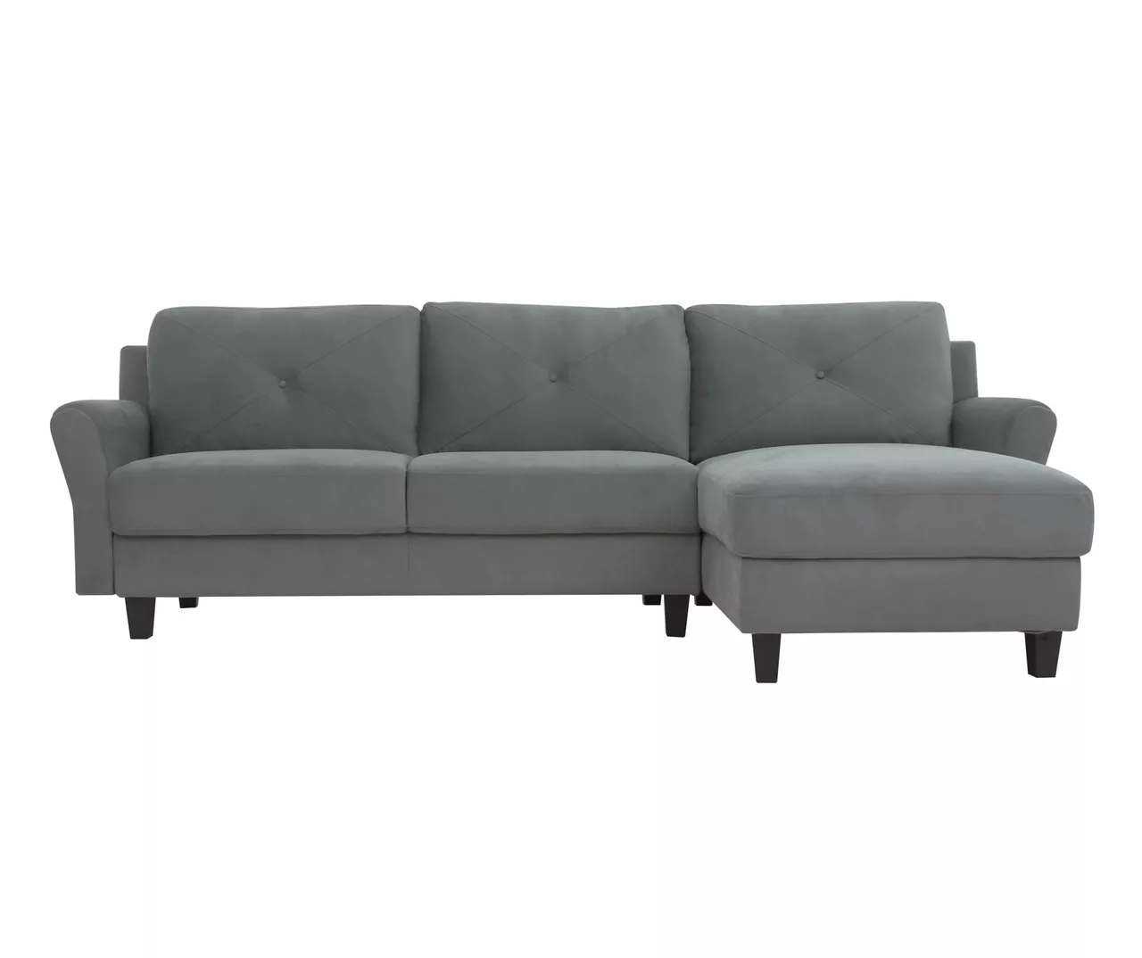 Built for lasting quality, this Hayward sectional sofa combines form and function to bring you the perfect addition for your space and style. The premium dark gray microfiber upholstered fabric and solid eucalyptus wooden frame deliver a modern touch, while the high-density foam cushions with rolled arms and beautifully button tufted back surround your body with comfort. Durable and versatile, the Hayward sectional transforms any room into your favorite place to relax in pure bliss.