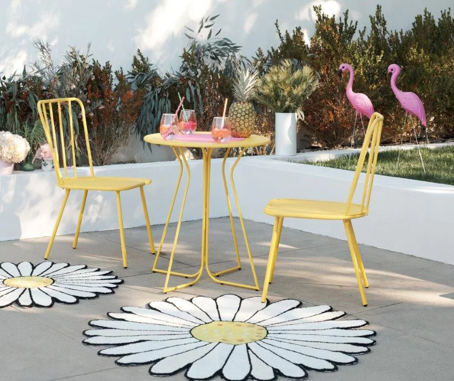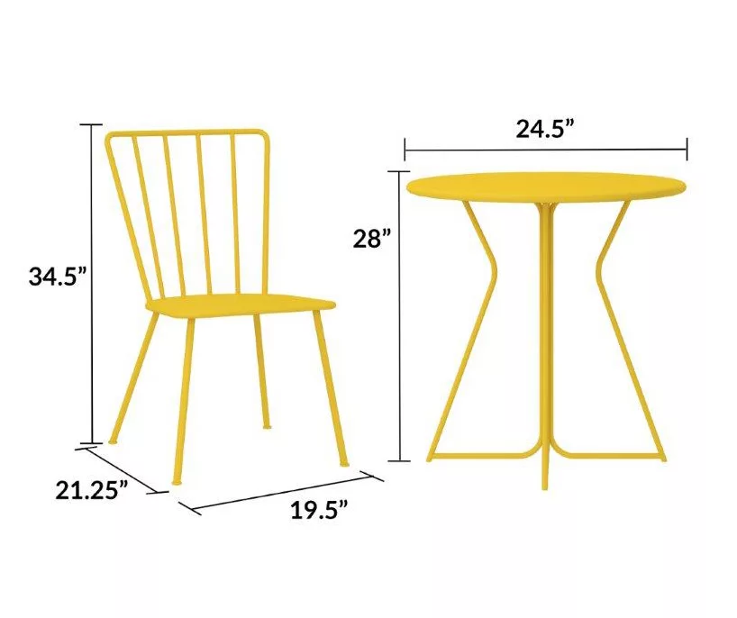 This three-piece Heidi furniture set from Novogratz is the perfect decor for all sorts of outdoor fun. This bistro set is light on its mid-century feet and fits perfectly into smaller outdoor spaces with its slender legs, making it the perfect stylish set for any home. This set is perfect for keeping poolside, using on the patio or entertaining on a balcony.