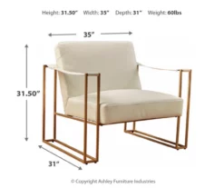 Less is so much more with the ultra-cool Kleemore accent chair. A mastery in open-concept living, this chair with sturdy metal legs is enriched with thickly padded box cushions wrapped in a cream leather with ostrich patterned embossing. Leather armrests are a strapping touch.