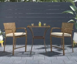 - Includes 2 outdoor bistro dining chairs with cushions and table