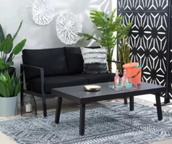 Great for entertaining guests on your back porch or putting your feet up in your sunroom, this minimal coffee table is the star player among outdoor décor. The frame is constructed of aluminum for strength and stability while maintaining a lightweight design for easy transport. A black powder-coated finish offers resistance to rust and a sleek look that will last for years to come.