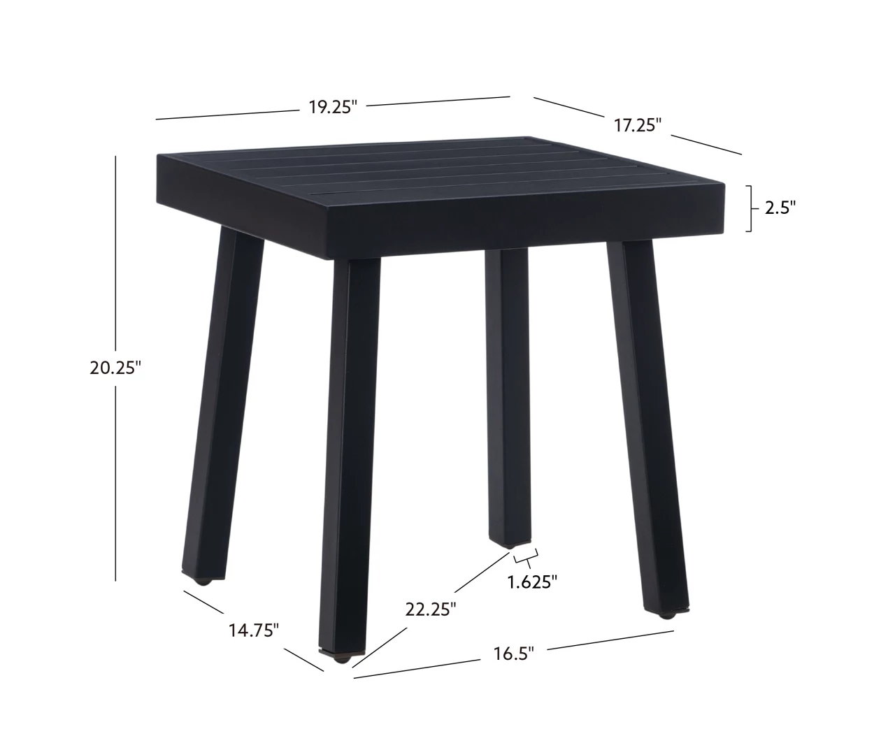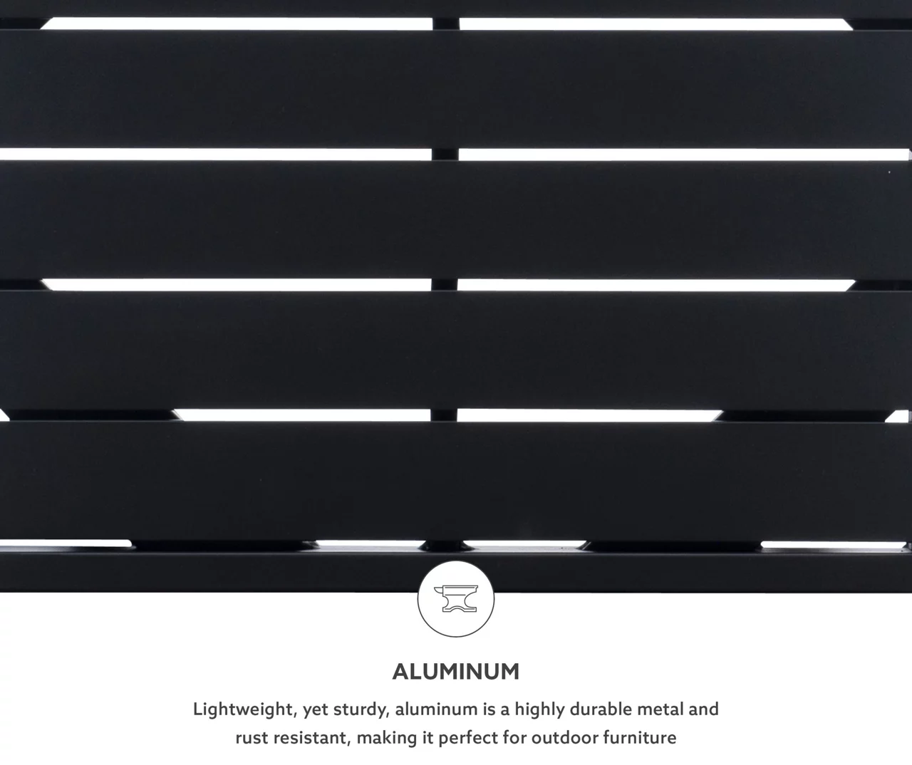 Modern, modest and reliable, this stylish side table will lend a hand when you need someone to hold your drink or elevate your outdoor décor. The frame is constructed of aluminum for strength and stability while maintaining a lightweight design for easy transport. Moreover, there’s no need to stress about taking it in and out after each use, as the black powder-coated finish is rust resistant.