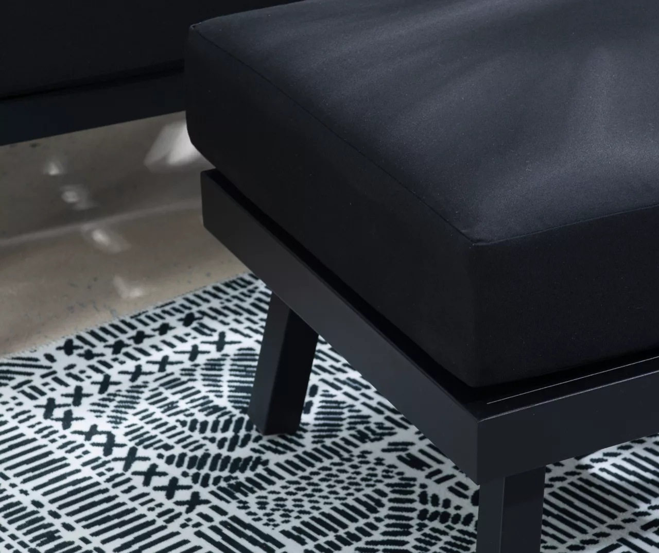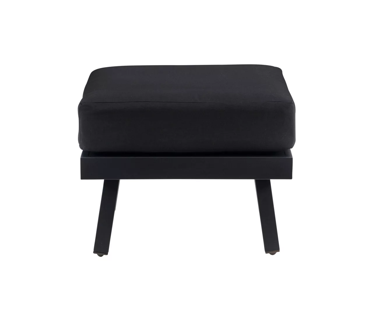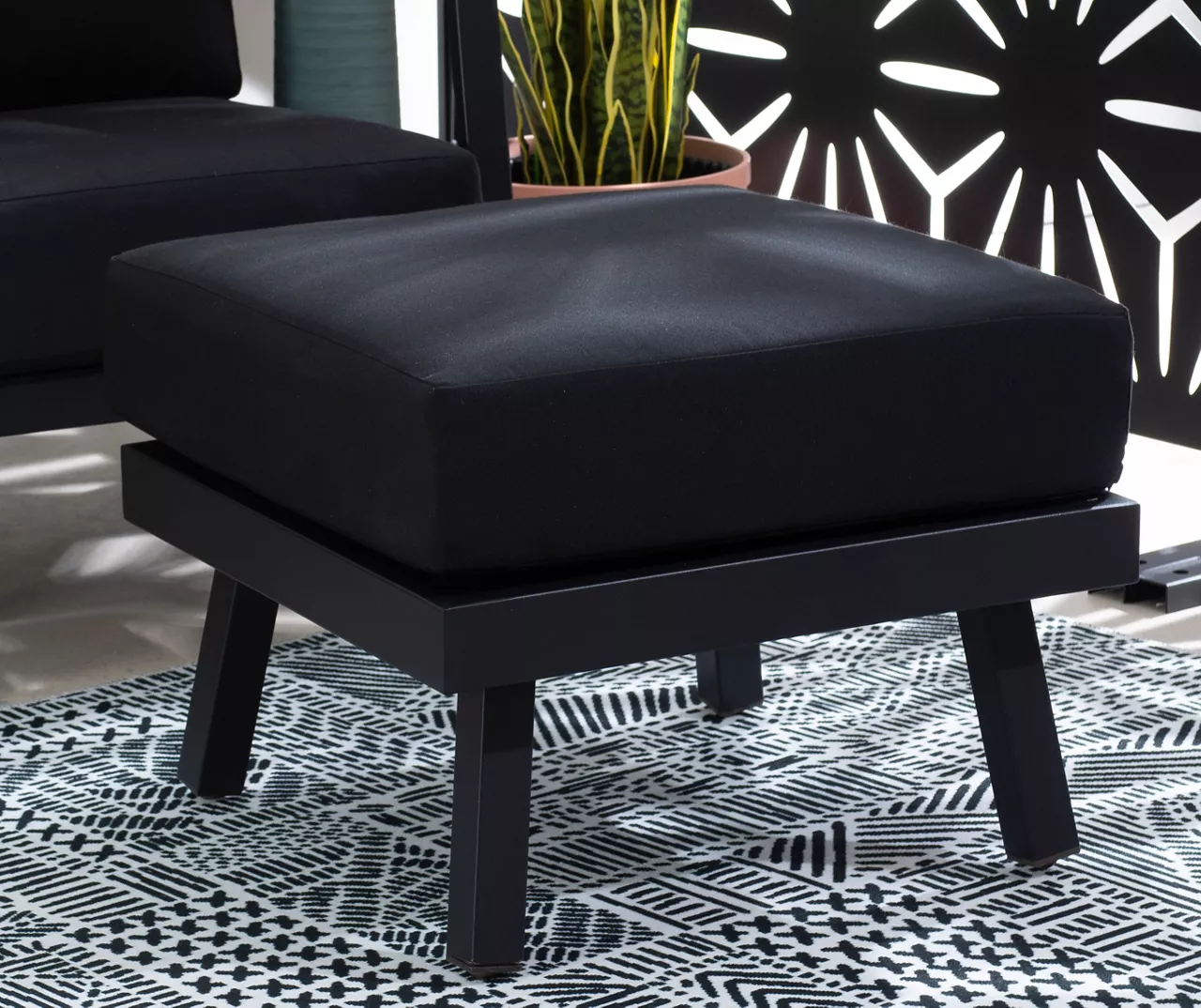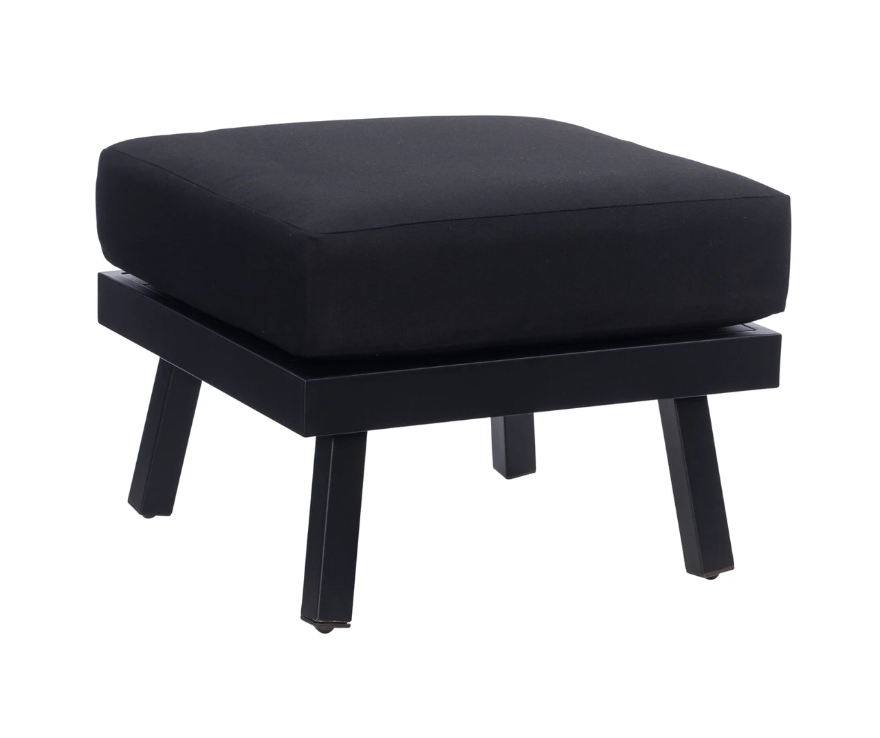 Kick up your feet and relax year round with this outdoor ottoman. Constructed of aluminum for a sturdy base that’s easy to transport, the black powder coated frame is also rust resistant. Additionally, the cushions are upholstered in black Sunbrella fabric that is fade, stain and mold resistant, so you can enjoy this piece outside for years to come.