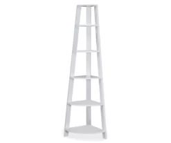 Make use of a spot that is often tough to work with: the corner. Set up this etagere bookcase and let it do its thing! Look how nice this bookshelf fits in a corner of your living room, office or bedroom, allowing you to showcase books and all types of decor easily. Maximize storage and display with a modern piece that will be sure to help you utilize all the space available to you thanks to five fixed tray style shelves. Three sturdy beam legs ensure structural integrity to this corner ladder shelf, finished in a white color.