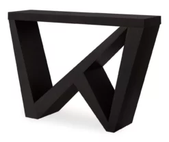 Bring a “wow” factor into your home with this impressive console table. Extra-thick panels in a gray cement-look finish give this accent table its big, bold look, while the long table top is supported by an asymmetrical base in a “W” shape. The thick, wedge-shaped legs and support panels of the base intersect to create two geometric-shaped openings that offer an airiness to balance the table’s hefty appearance. While this contemporary table may look substantial, its space-saving design won’t take up too much room when placed against a wall in a living room, an entryway, or a hallway.