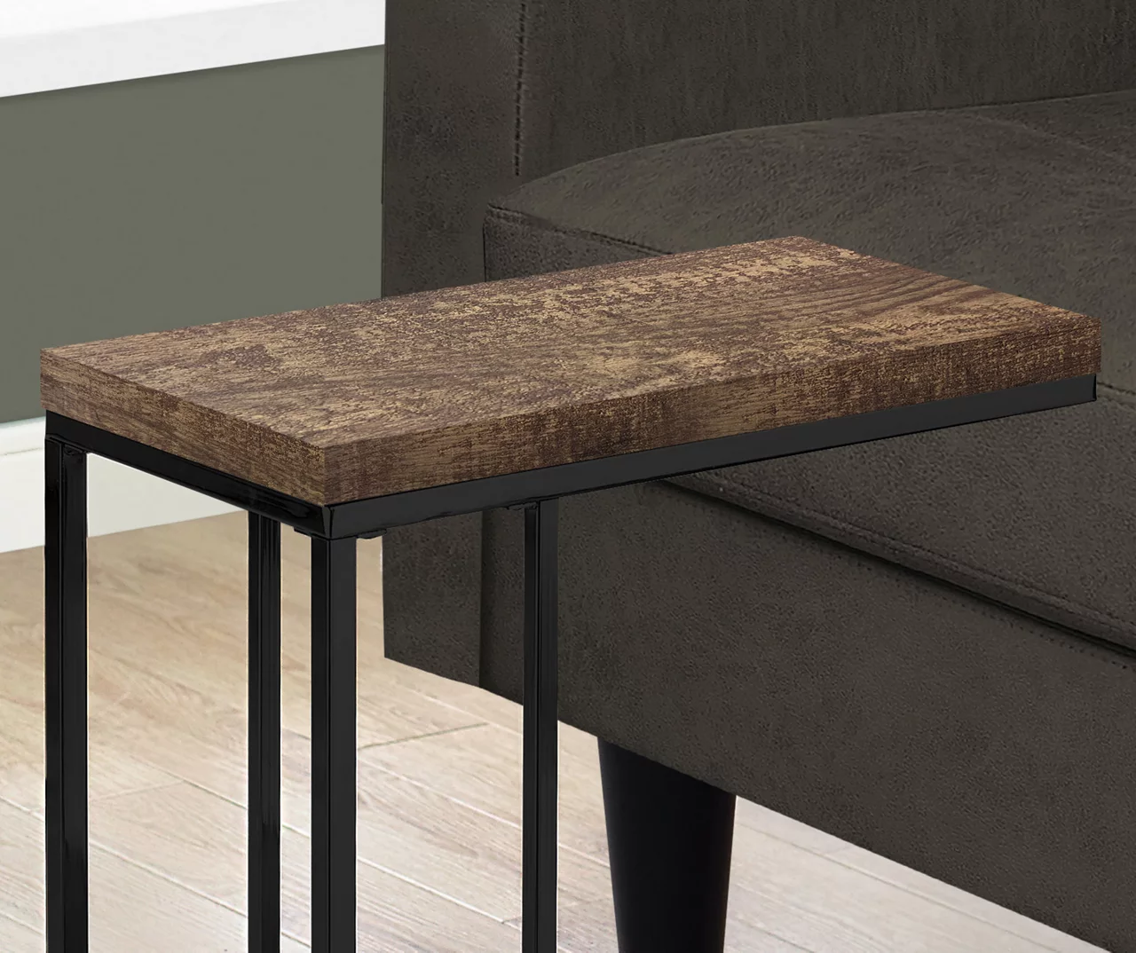 - Stylish brown and black metal C-shape side table