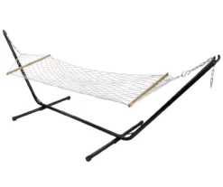 Add this relaxing hammock to your outdoor living space for some cozy trendiness. This hammock is the perfect addition to your outdoor space. Bring this hammock camping keep it in your backyard or in an enclosed space for easy comfort.