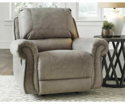 Seamlessly merging classic elements with modern trends, the Olsberg recliner invites you to bring home the best of then and now. Wrapped in a fabulous steel gray upholstery with sumptuous suede-like feel, this easy-elegant reclining chair is dressed to impress with updated roll arm styling and tailored touches including nailhead trim and window pane stitching.