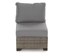 Gather friends and loved ones outdoors in modern-inspired style with the addition of this armless sofa chair for the Pembroke sectional and coffee table set from Broyhill. The armless design allows you to add length either to the right or left side of the sectional, creating additional seating in your outdoor oasis. The sofa chair’s steel frame is covered in decorative handwoven all-weather wicker as comfortable, oversize deep seating cushions provide a cozy spot to catch up.