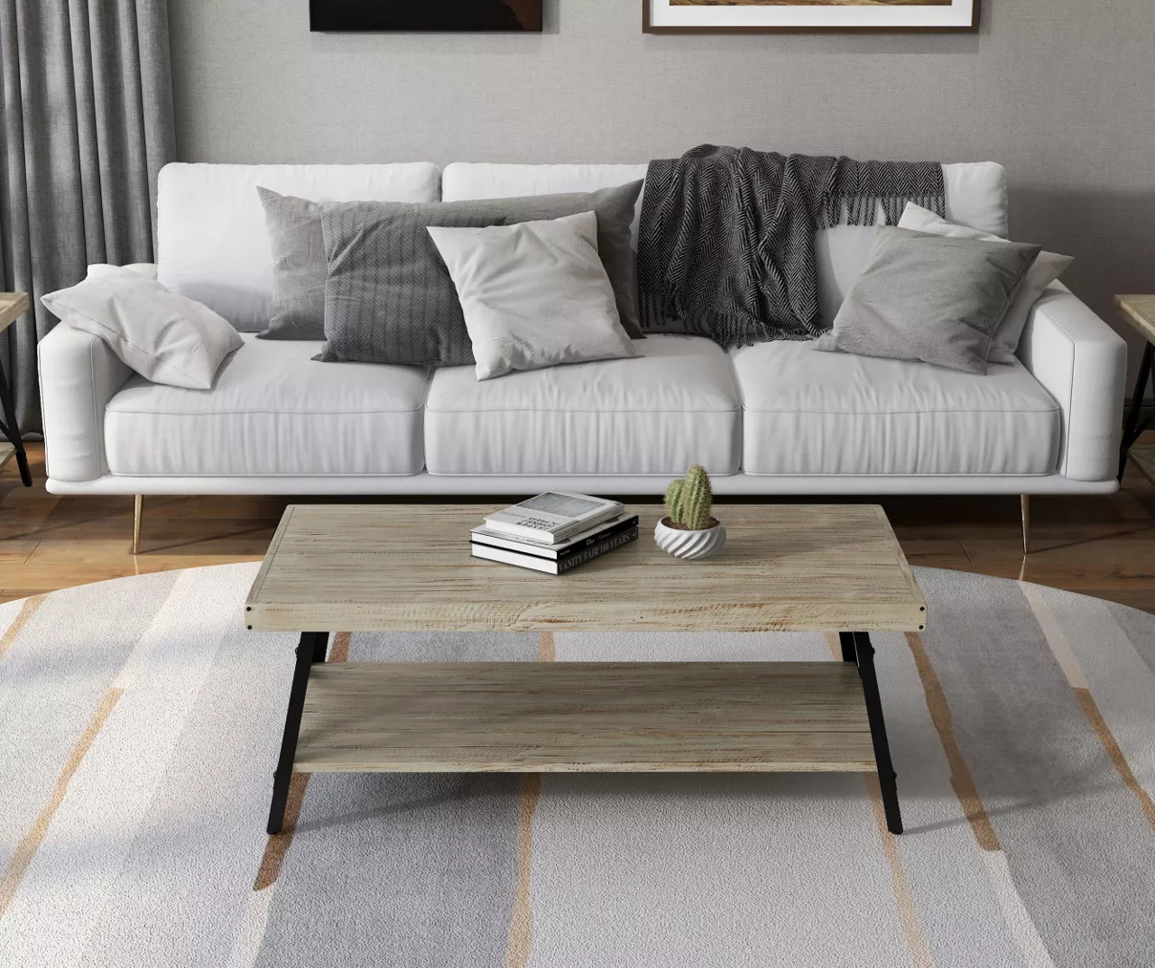 - Rustic, industrial-inspired coffee table