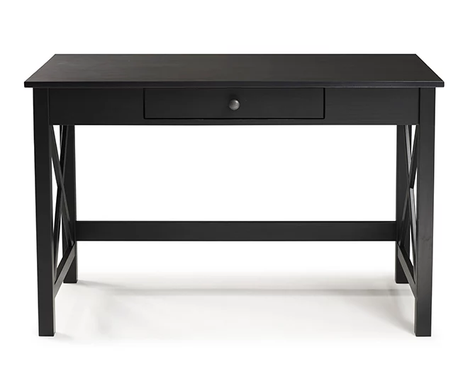 Classic simplicity and a chic black finish give this end table a handsome, versatile look that enhances any space. Ideal for a variety of styles from farmhouse to modern, this piece creates an instant, stylish workspace to your home. X-shaped sides add visual interest to the design while the neutral, black finish pops with any color scheme.