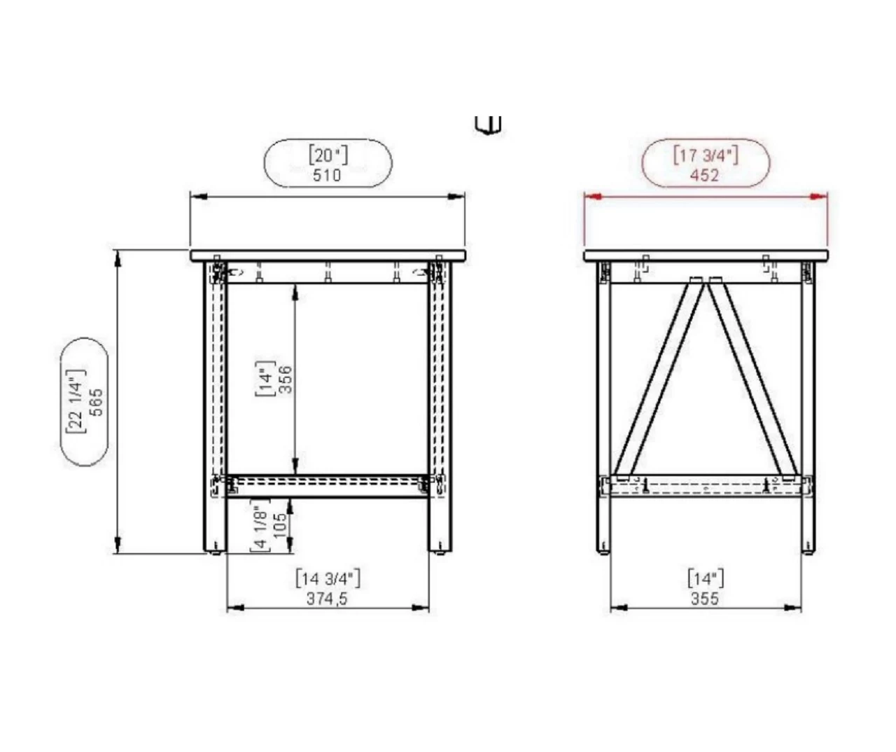 - 17.72″L x 20″W x 22″H