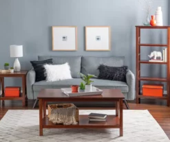 A neutral, classic antique brown finish covers this end table and allows this piece to easily complement a large variety of décor. This end table features a simple body that makes it perfect for any space. A gracious tabletop and bottom shelf provide storage and a display space for picture frames and tabletop trinkets.