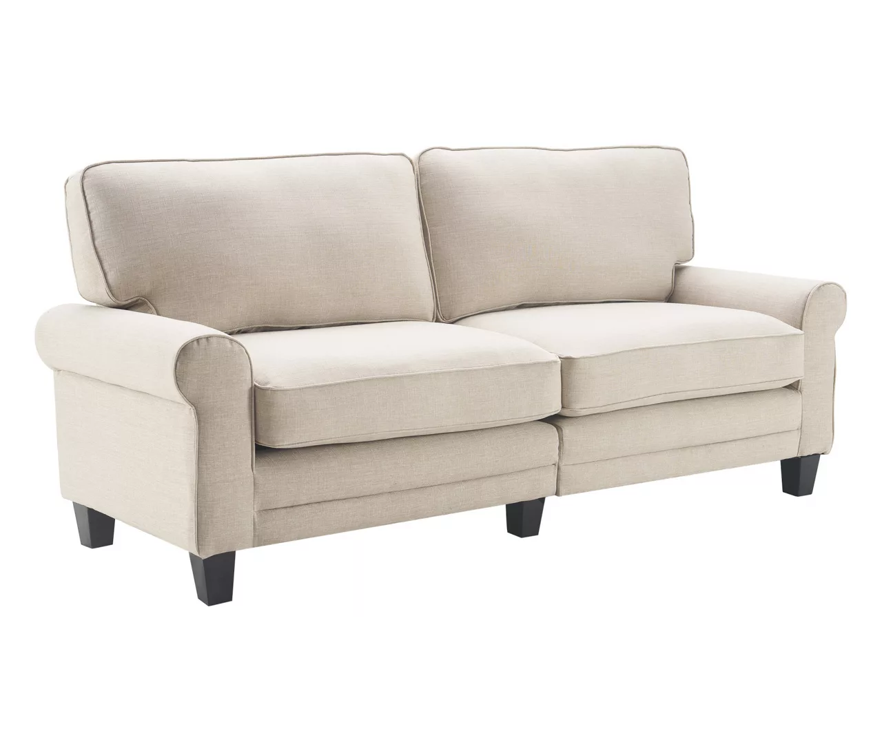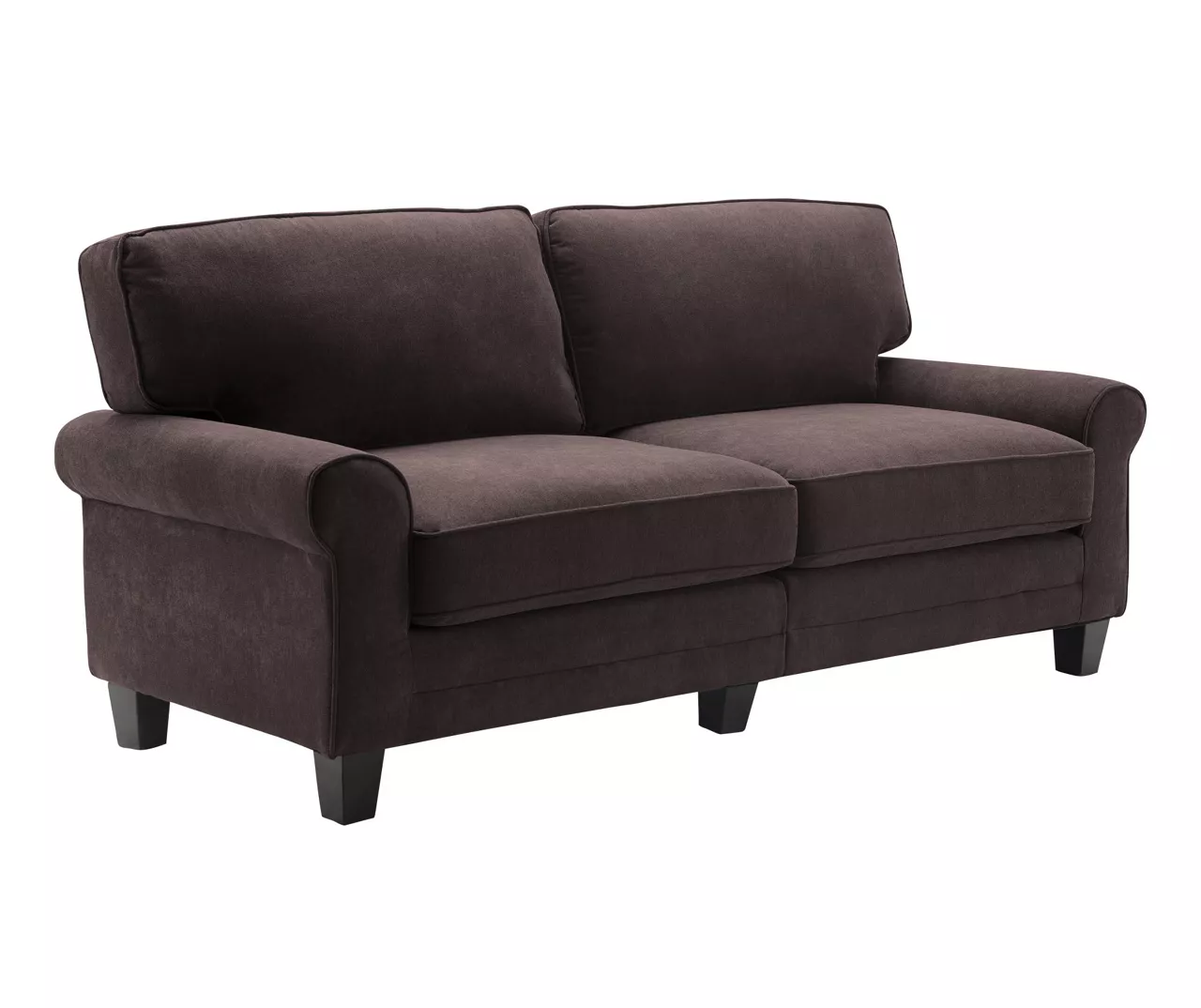 Enjoy functional style and plush, comfortable seating with the Serta Copenhagen sofa. A great solution for smaller spaces, its compact size and easy tool-free assembly makes it an affordable and stylish seating solution for your apartment, condo or office. Soft rounded arms and pillowy back cushions bring traditional style to your living room, den or game room. Quality hardwood materials deliver strength and stability you can count on, while individually wrapped coils surrounded by high-density foam and poly-fibers provide comfortable seating you can sit back into.