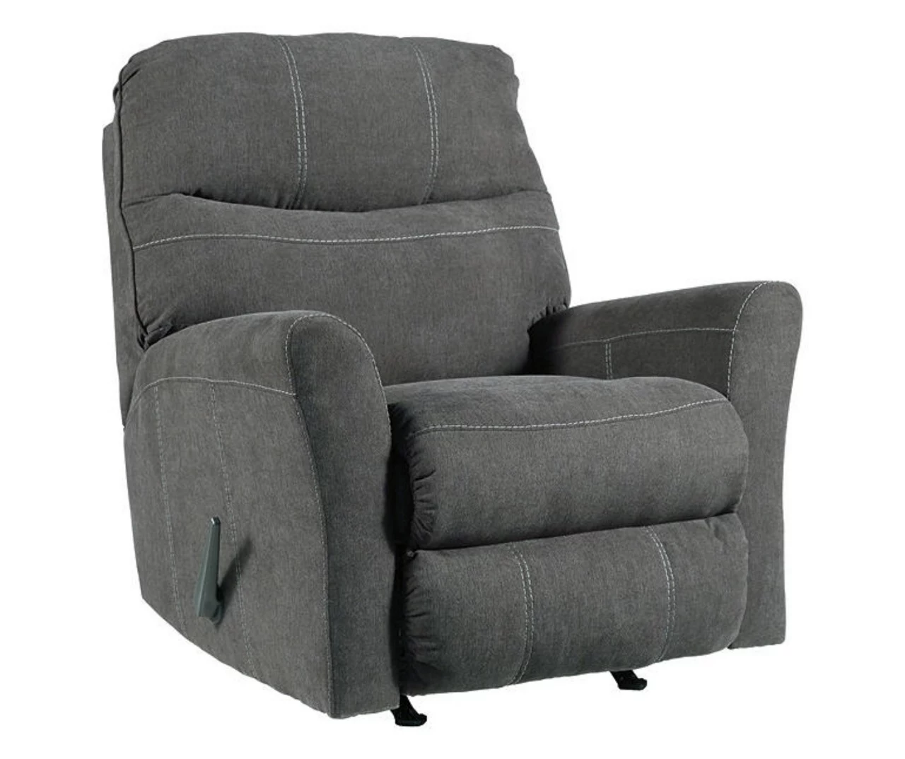 Destination: relaxation oasis. Elevate your design aesthetic with this rocker recliner. Plush yet structured cushioning packed with metro modern flair, this recliner is where sophisticated style meets everyday comfort. Recline in infinite positions of soft comfort with one pull.