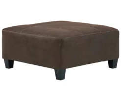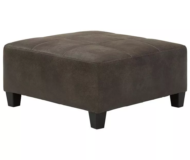 If you love the cool look of leather but long for the warm feel of fabric, you can take comfort in this oversized ottoman. Wrapped in a fabulous faux leather with a weathered hue and hint of pebbly texture to resemble the real deal, this decidedly modern ottoman proves less is more. Elements include jumbo stitching for fashion-forward flair.