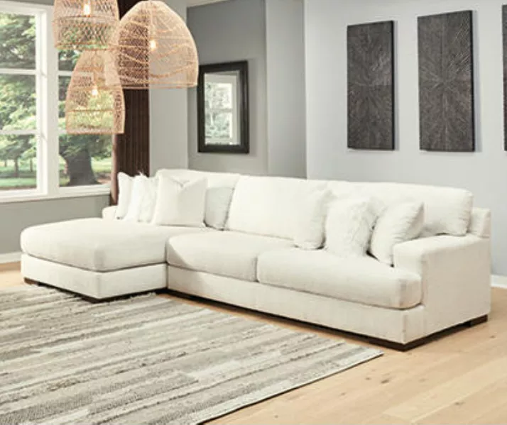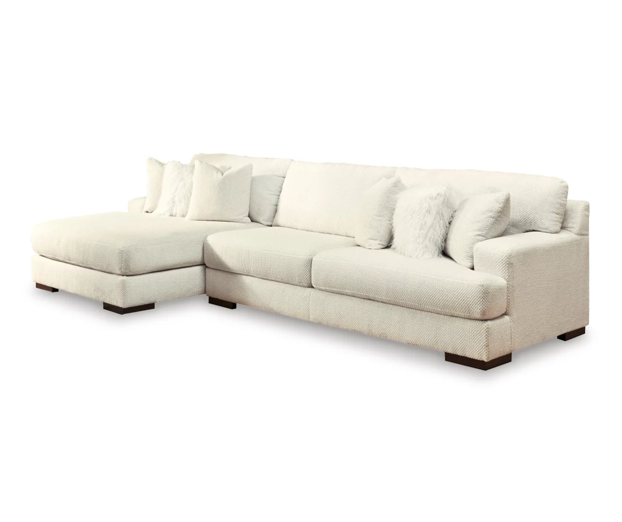 Decadently soft microfiber lends big-time comfort and style to the Zada sectional. A warm, welcoming contemporary design is on full display with its wide track arms and clean lines. Fun faux fur toss pillows bring a bit of glam.