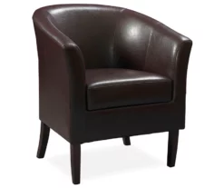 Accent your seating area in retro-modern design with this sleek Spencer club chair. Black faux leather lines its arching back and high armrests as its deep cushion seating brings comfort in style. Raised black legs in a tapering design create a sophisticated look for this chair.