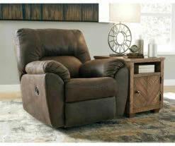 With plush cushions and angled pillowtop arms, the Tambo rocker recliner takes comfort to a whole new level. Faux vintage leather requires minimal care, making this piece ideal in homes with children and pets. The seat reclines with the pull of a tab, putting total relaxation at your fingertips.