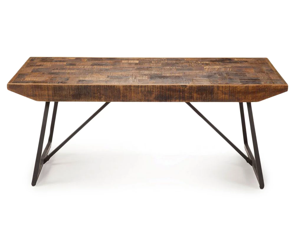 Mango wood in a signature parquet pattern gives the Walden cocktail table a distinctive look. Paired with the iron base, it’s sure to give any living area its own unique style.