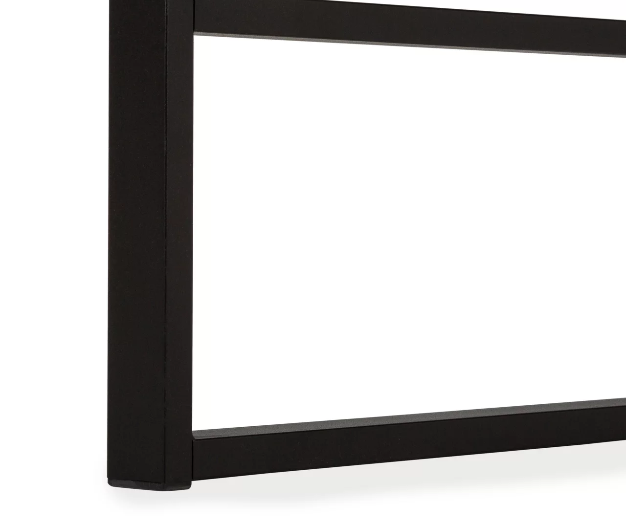 - Robust metal legs in a black finish are incorporated into the desktop for an interesting visual effect